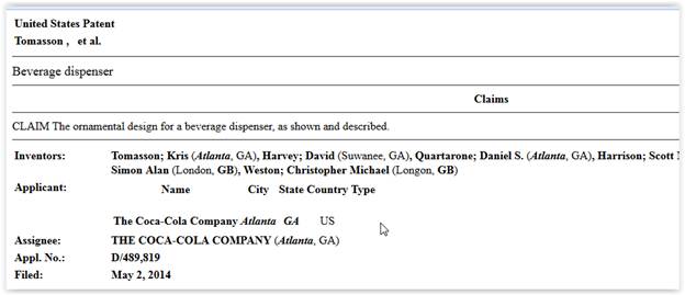 Let’s take a look at one patent that was assigned to Coca Cola: